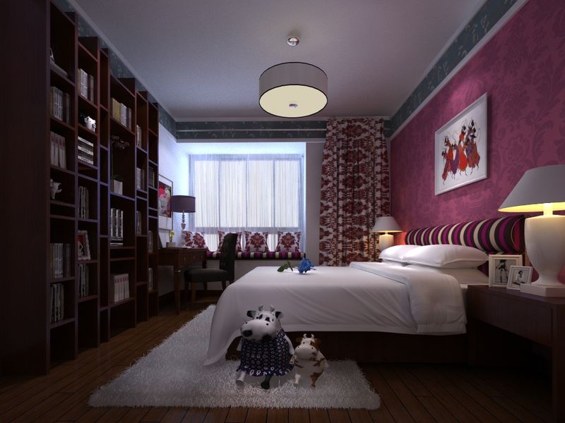 中式的字畫點綴于臥室床頭背景墻上,富有品味。