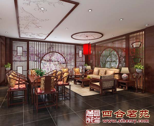 多功能廳:如果說雨是上天賜予江南的特色,難么,雨下的傘就是江南回報(bào)上天的景致,中軸線前方橫幅的垂柳,用北京燈光營(yíng)造懸浮的荷花,早已構(gòu)成招牌式的江南風(fēng)景。聚集著空間的主視角,軸線兩側(cè)什錦窗天棚,桃枝條鏡延攀出天棚,靜靜的在旁和拍,什錦窗下蘇繡燈籠用水晶圍繞,可謂請(qǐng)調(diào)獨(dú)具。整個(gè)空間意韻十足,情感豐富,宜靜宜動(dòng),滿足了此多功能廳的要求。